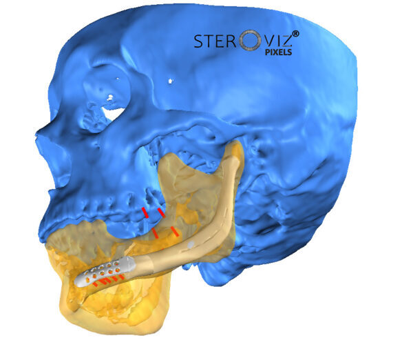 Steroviz provides custom solutions involving custom implants, 3D printed custom cutting guides, and anatomical models for a wide variety of complex craniomaxillofacial surgical cases. The types of custom implants include subperiosteal implants, orbital implants, mandibular implants, TMJ implants, cranial implants to name a few.